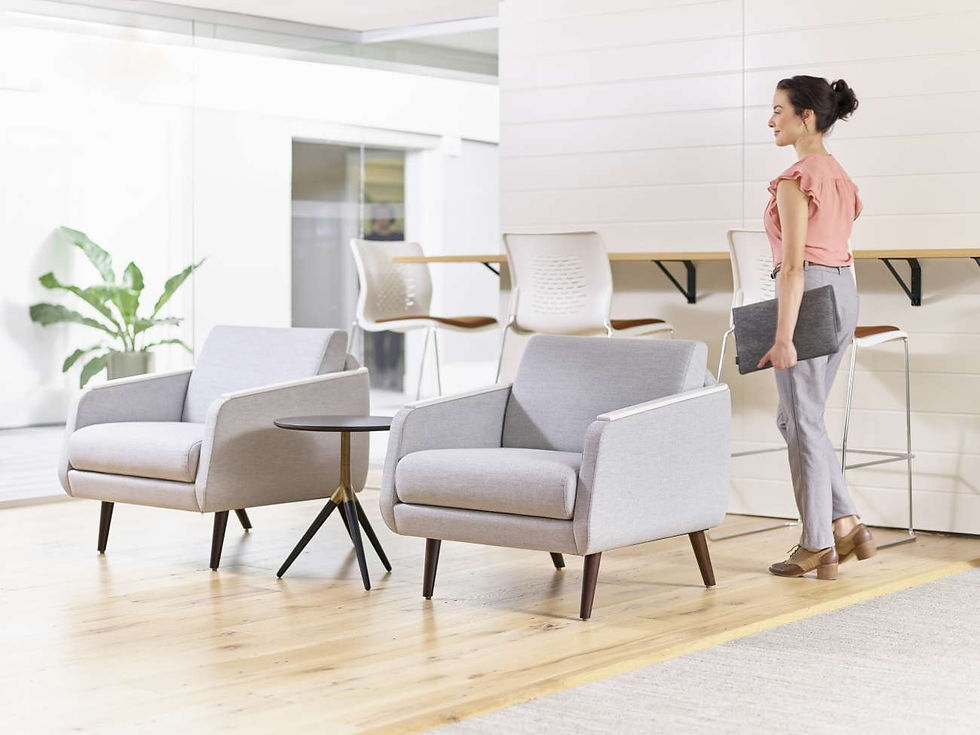OFS’s Carolina have brought us a brand new seating collection- Evergreen. Immediately stylish and recognizable, Evergreen’s relaxed and vintage visual appeal communicates invitation and comfort. Primarily designed for lounge areas and shared public spaces, Evergreen’s lounge chair, loveseat, and sofa can bring an elegant touch to spaces such as lobbies and waiting rooms, yet are warm enough to enhance comfort in settings like private offices and home environments. Featuring beautifully stanced ash wood legs that are available with optional powder coated metal ferrules, Evergreen’s sophisticated yet friendly design profile creates a fresh appeal in any room. The many different upholstery choices and arm cap styles within the Evergreen Collection amount to a huge variety of available customization- a great indication of quality and timelessness. Another wonderful addition to the Carolina label, and hopefully the first of many excellent OFS pieces for 2019.